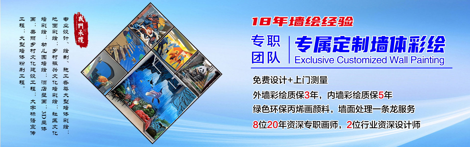 業(yè)務范圍涵蓋:社區(qū)文化建設(shè)彩繪;校園文化建設(shè)彩繪;各類文化墻彩繪;古建彩繪;家居彩繪;幼兒園墻繪;酒店壁畫;3D立體畫;文化街美化工程的建設(shè);美麗鄉(xiāng)村文化建設(shè)工程;房地產(chǎn)圍擋樓盤展示工程;大字標語宣傳工程;浮雕雕塑、門樓牌樓、噴泉假山等工藝美術(shù)施工工程;各種大型墻體粉刷工程。